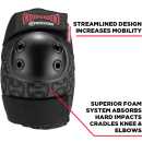 The contoured form-fitting design cradles knees & elbows while the superior foam system absorbs hard impacts. Coupled with the seamless interior finish this pad set provides ultimate comfort.