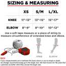 To ensure a perfect knee and elbow pad fit, measure the circumference of the extended knee and elbow and match them to the sizes listed below.
