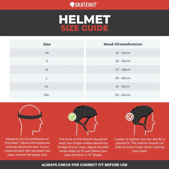 - XXL: 63-64cm (8 years to adult)
