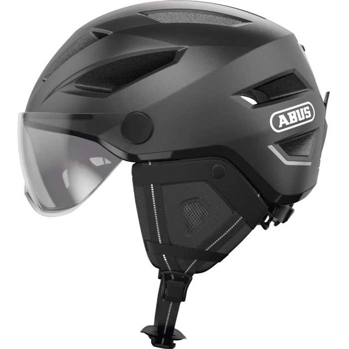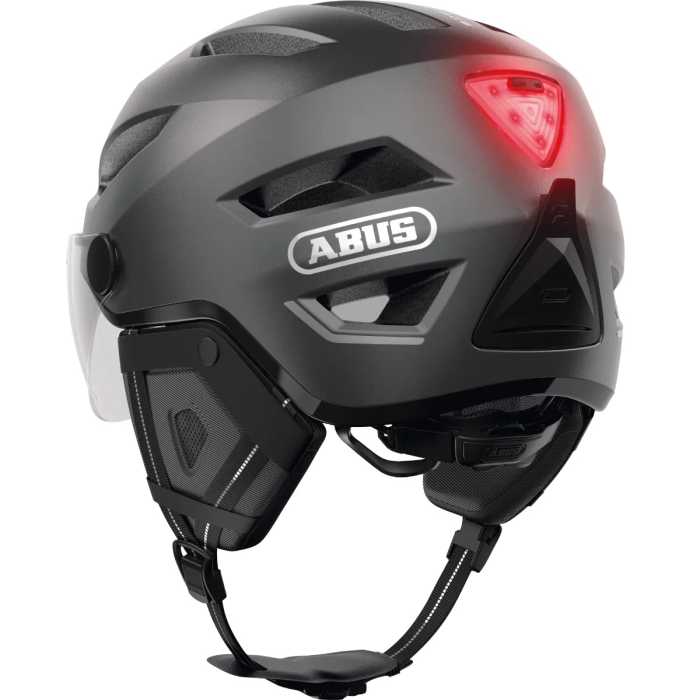 With the Pedelec 2.0 ACE, ABUS offers a bicycle helmet that meets the high safety requirements of the big city. Its deep temple area provides the required additional protection. The Pedelec 2.0 ACE is also characterised by the integrated rain hood, which can be quickly pulled over the helmet at the first sign of rain. The especially bright, rechargeable light and the replaceable visor offer additional, passive protection.
