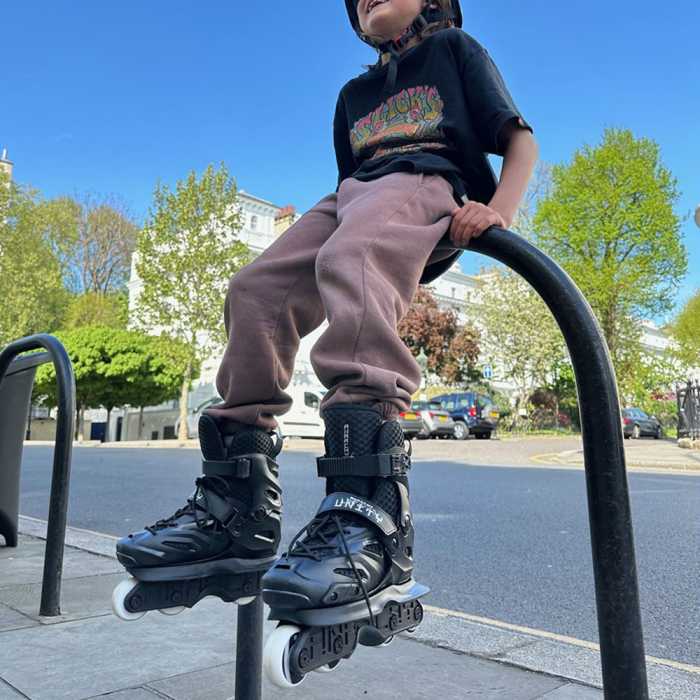 The Anarchy Unity Adjustable Aggressive Skates offers a four-size adjustment system that allows the skates to grow with the user. The skate is equipped with a one-piece soul and frame system, that allows flat setups with minimal wheel bite. Made in nylon and fibre composite, this frame slides fast and predictable. The perfect learner skate for aggressive skating. Equipped with high quality wheels, a wide H-block and rocker-able wheel spacers.