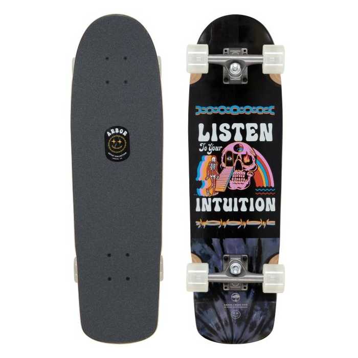 Certified Arbor Completes are fully assembled skateboards built using select, high-end components that complement the performance and geometry of each of our shapes. Each package takes into consideration: the angle, geometry, and size of the trucks; the size, shape, and diameter of the wheels, the hardness and rebound of the bushings; the placement of wheel wells; and all aspects of shape. When buying an Arbor, look for the symbol, and insist that your complete comes with components approved by Arbor Skateboards.