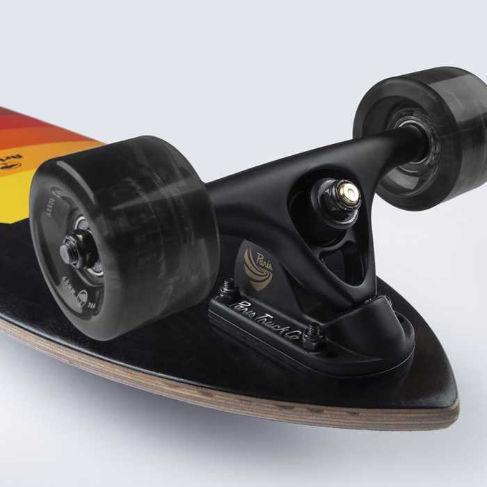 A compact pintail with an extended wheelbase and mellow flex for around town cruising and lower speed carving.