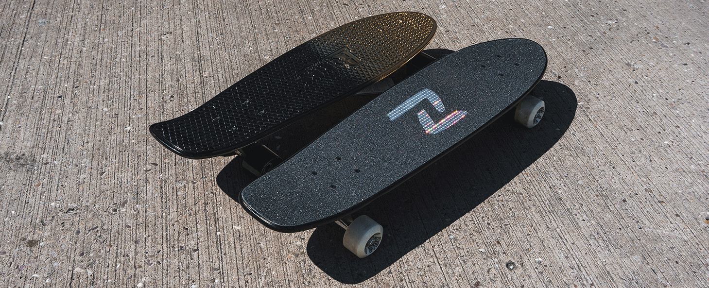 Braking can be quite daunting, but once you learn how to do it correctly, it’s a piece of cake. What you want to do is stand in the same position as if you were to push yourself forward, then balance on the standing foot and lift the other foot off the back, pointing your toes on both feet forward. Whilst you do this, bend your front knee to lower your centre of gravity, whilst also lowering your back foot towards the ground. You’ll then want to lightly brush your foot on the floor. The lighter you brush your foot on the floor the smoother you will come to a stop. Now, you can start lifting your foot and placing it back onto the board with your feet in the same original position.
