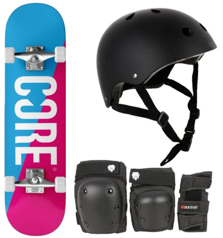 Core are somewhat of a household name when it comes to action sports and is a trusted brand for skateboarders, offering a range of completes for both beginners and pros. Of course, when getting started with any new hobby, you may overlook some of the essentials, so with the Core Skateboard Bundle, we’ve included pads and helmet so you don’t need to worry about forgetting anything.