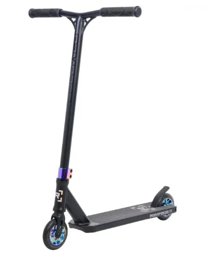 The Rampage R2 Stunt Scooter stands at 840mm high and weighs as little as 3.73kg, so again, is another super lightweight scooter. It comes fitted with an integrated Scooter Headset, together with composite Scooter Brakes which will allow you to react quickly and control your speed sharpish. The R2’s 110mm alloy wheels offer excellent grip and control, making it even easier for riders to execute stunts and tricks. The forks and brakes on this setup are both compatible with 120mm wheels too, just in case you want to switch your current ones over to this size.