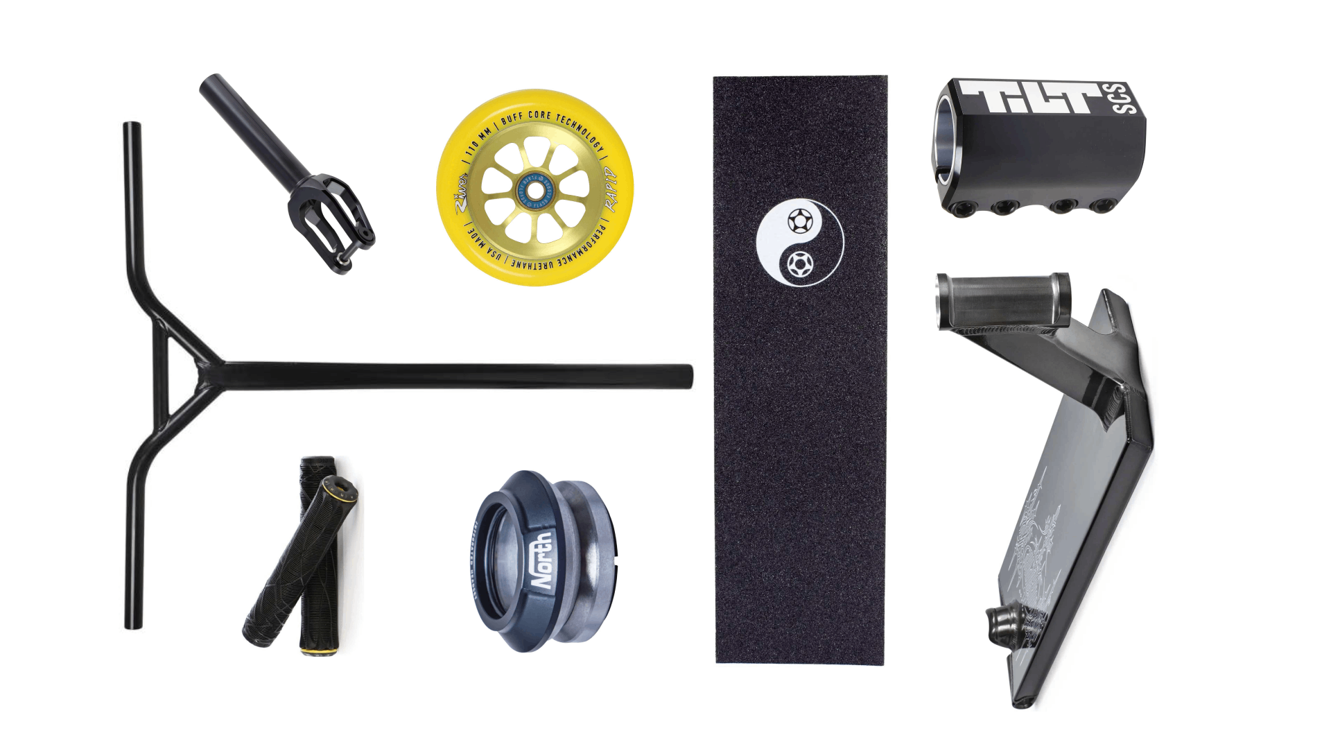 Dylski has gone for a clean Tilt X North mash up, highlighting the black deck and handlebar with the bright yellow River Rapids wheels. Is this so we can notice him at the park? Either way, it's a fantastic build which would be the envy of any street rider.