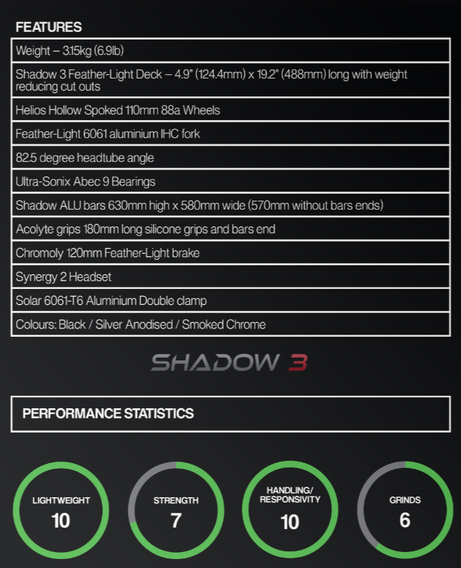 Drone Shadow 3 Feather-Light Stunt Scooter Specs Guide
