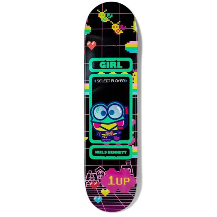 Select your player and level up your Skate game with these Sanrio Kawaii Arcade pro decks from Girl. Each pro deck features a different character from the world of Sanrio including the international superstar, Hello Kitty. Niels Bennett's Kawaii Arcade Skateboard deck features vibrant, arcade-inspired graphics.