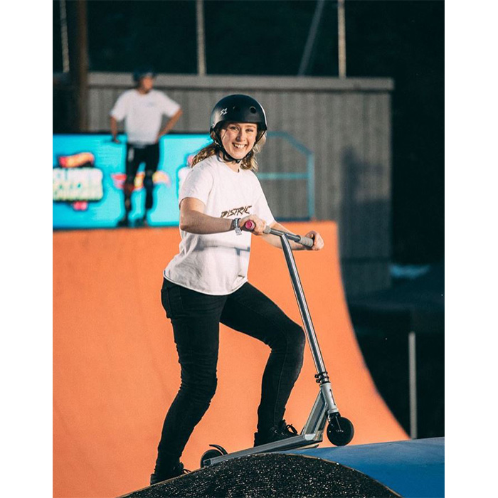 Where do you think female riding is going to go in the future? “It’s only going to get bigger and better. I watch a lot of female BMX and the difference in riding has been incredible since they were given equal opportunities in their sport. Now scootering has World Skate offering equality in scootering I can already see the female riders raising the bar. New women are appearing every day landing crazy tricks we never thought would be possible!”