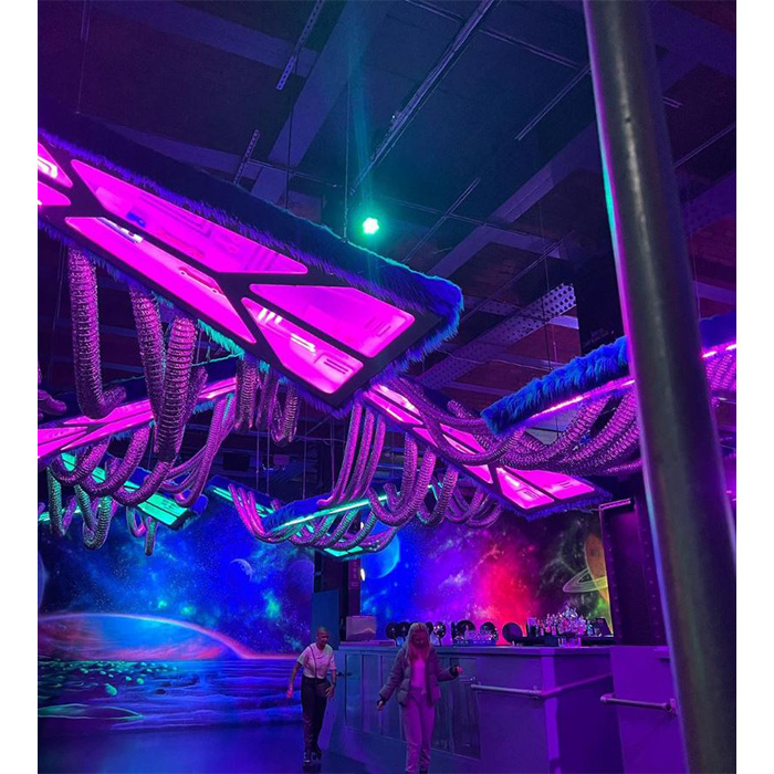 Co-owner Larissa-Sophie Houghton explains “We have created an amazing new world where people can escape reality, get lost in music and roller-skate into space. The idea of the bar is to dock into the space station, where we wanted to create the imaginary experience of how it feels to be transported to a galactic beach; the place to sip cocktails from the promenade and feel a surge of energy from space skaters as they whizz around you in orbit.”