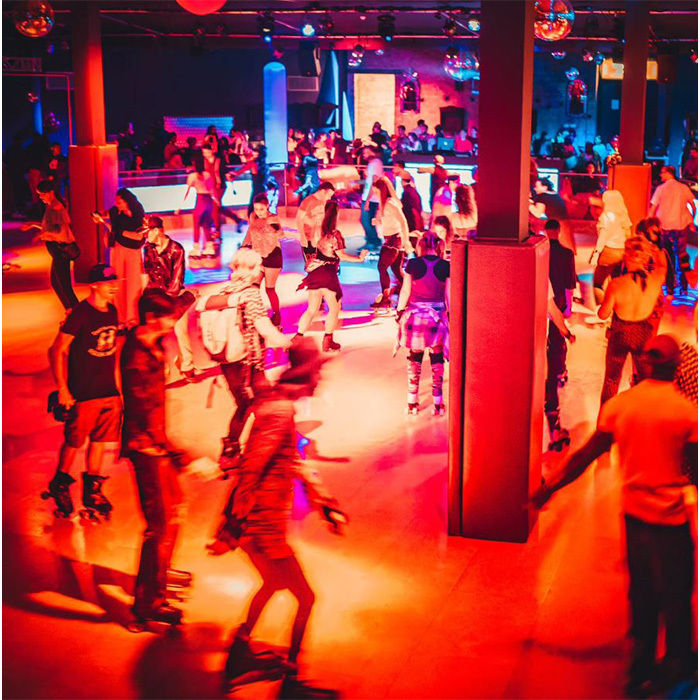 Roller jam was created by Jerry McGrath who has run Jerry’s Roller Disco for 26 years and was a former roller-skating champion in England, Lenny Scarlett who is involved in the popular Digbeth Dining Club and Mama Roux’s, George Kafetzis who is known in the local electronic music scene, and entrepreneur Rue Jay who is renowned in the nightclub industry.