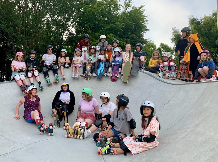 Girlskateoxford located in Oxford, supports Girls and non binary skateboarding. They work closely with Oxford Wheels Project. Oxford Wheels Project is a registered charity run by volunteers. The skatepark is funded by grant applications, donations and fundraising events co-ordinated by park users.