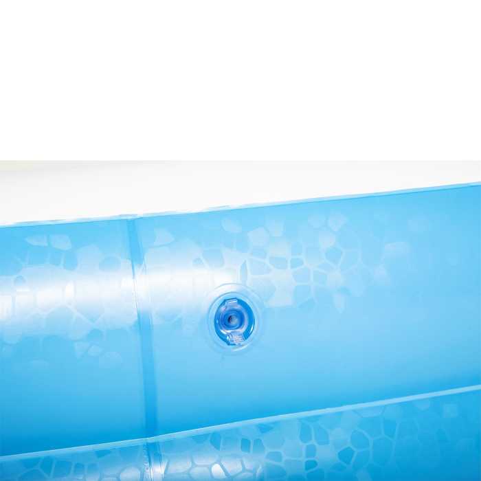 The family pool features extra wide walls made from durable vinyl which will help prevent water loss when climbing in and out of the pool. The 2-ring sturdy I‑beam construction helps add stability to the pool when in use.