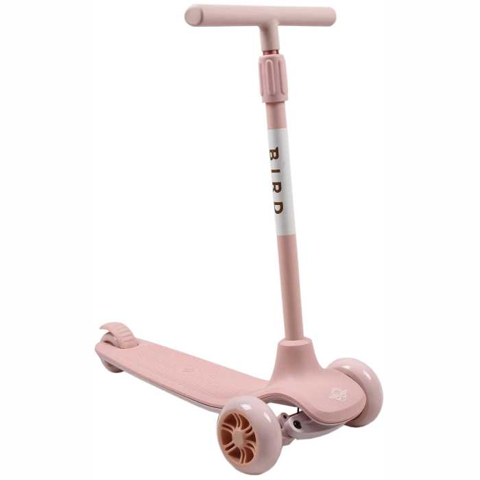 Birdie is the non-electric, kick-powered scooter for ages 3+. Fly with the big Birds with a height adjustable T-bar, lean-to-steer frame, and three-wheel design.