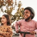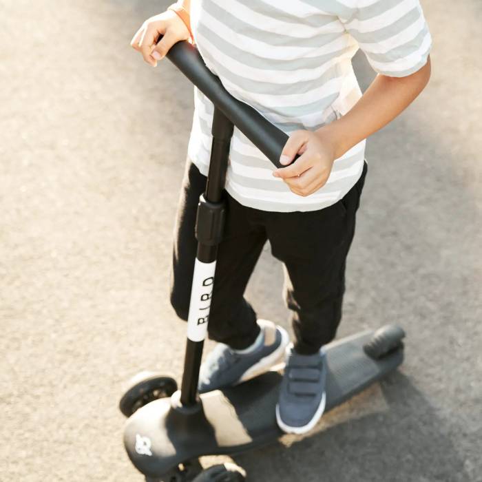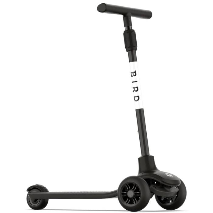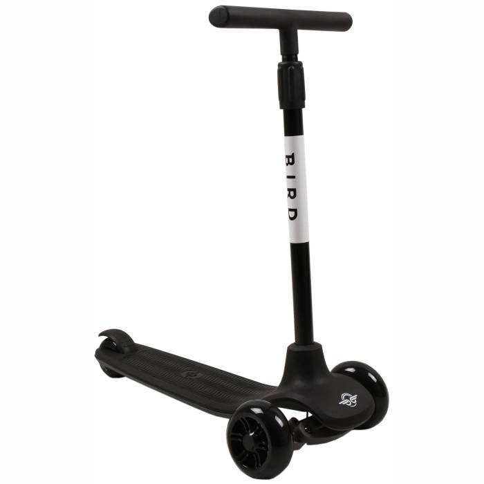 Birdie is the non-electric, kick-powered scooter for ages 3+. Fly with the big Birds with a height adjustable T-bar, lean-to-steer frame, and three-wheel design.