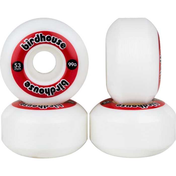 Diameters: 51mm (Rasta), 52mm (Grey), 53mm (Red), 54mm (Blue) Durometer: 99A Shape: Performance Graphic: Birdhouse Logo Material: