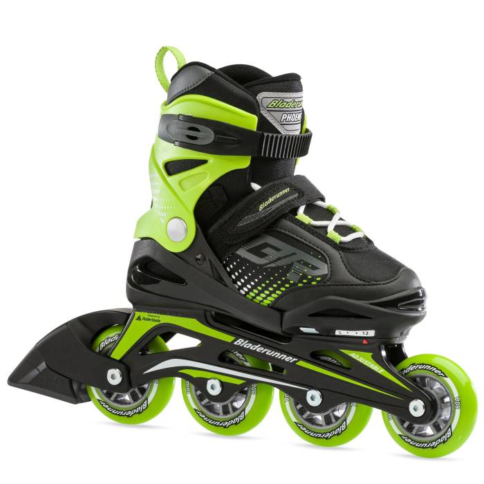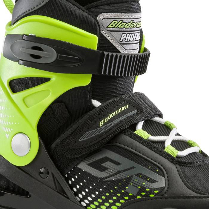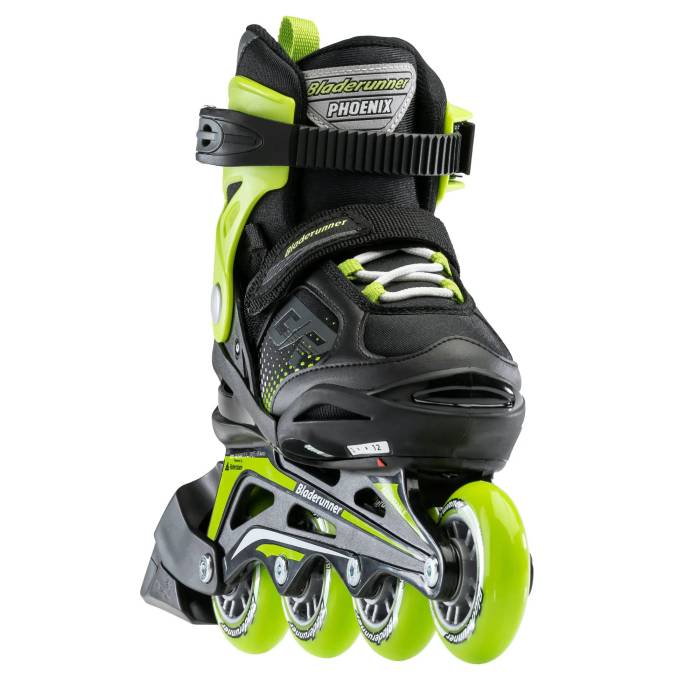 Phoenix is a value-driven adjustable skate for kids. Backed by Rollerblade technology, this Bladerunner skate fits well and performs at just the right level. The sleek, lightweight structure helps with lateral support and the lining provides effective cushioning. Adjustable sizing expands the skate four full sizes with a push-button and 72mm Bladerunner wheels/ABEC 3 bearings provide speed control; brake is standard. Phoenix is a quality kids’ skate at a budget price.