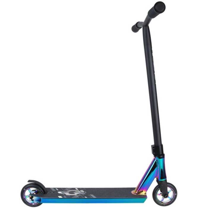 Introducing the Outrun 3 Stunt Scooter from Blazer Pro a great scooter for your entry into the world of stunt scooters, coming with a 6063 Aluminium Integrated Headtube deck measuring in at 500mm (19.7") x 115mm (4.5"), Steel threadless fork using IHC compression setup with an integrated headset for an improved compression to keep everything held together firmly, which is also easy to maintain. The 2 piece Steel Y bars measure in at 560mm (22") in height and 520mm (20.4") in width are held in place with a two bolt 6063 Aluminium collar clamp and topped with 120mm rubber handlebar grips. Finished off with 110mm 5 spoke Aluminium core wheels rolling on ABEC 9 Chrome steel bearings for a quick and smooth ride.