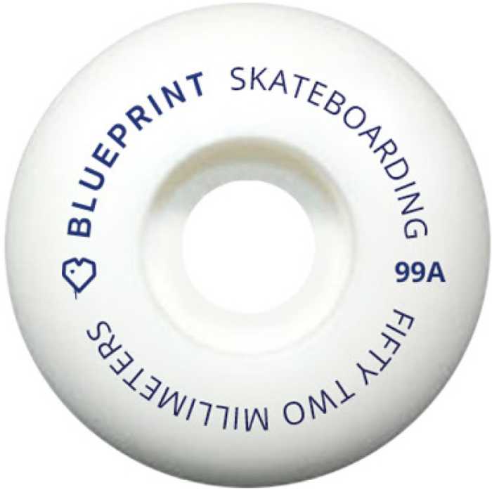 High quality wheels from Blueprint skateboards, with a subtle mini heart print on white urethane in a hard 99A durometer for all round use.