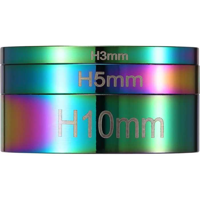 Pack of 3 Spacers 3mm, 5mm and 10mm Heights Included Compatible with All 1 1/8 Forks Headset spacers come in handy to make your SCS compression clamp sit higher up the scooters fork, meaning no modification required to get some forks to suit your setup.