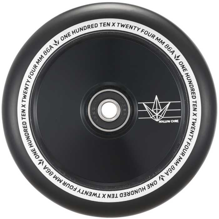 Blunt Envy have stuck with their tried and tested size of 110mm and mixed it up with a 24mm wide, 86A PU tyre. They've then wrapped it around a hollow core with 24mm wide Pu to give extra protection to the core. This gives a smoother, more even ride and with the 86A Pu provides you with a better rebound.
