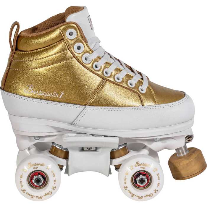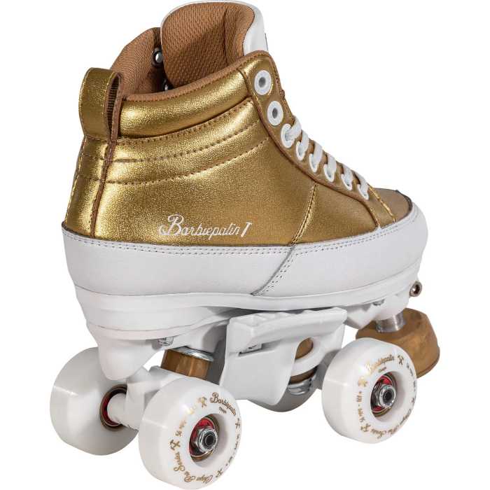 The new and improved, Kismet Barbiepatin Gold signature roller skates add a touch of luxury to your skatepark adventures.