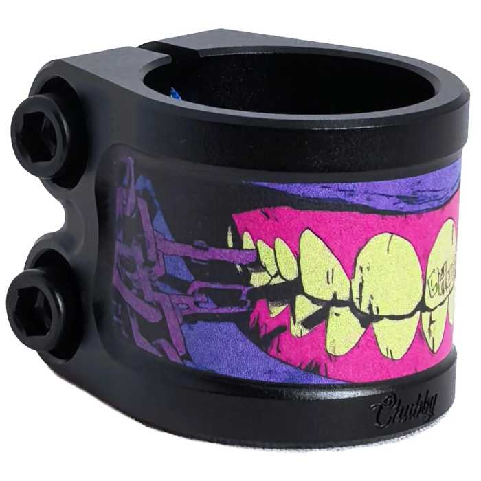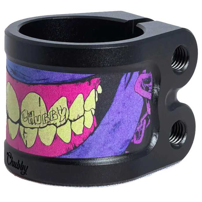 Chubby has released one of coolest clamps upon the scooter scene, after years of clamps being plain pieces of aluminium with a logo on Chubby have gone all out to make a range of clamps into a crazy piece of art. Suitable for both Oversized diameter bars and standard with the use of the included shim.
