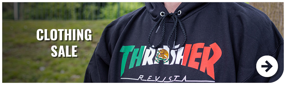 Our clothing range spans a huge spectrum of skate clothing, ensuring that skateboard enthusiasts of all ages and tastes can find the perfect garments to step their swag up and express themselves to the world. Our skate clothes range from t-shirts, jeans, jackets, coats, caps, beanies, sunglasses and so much more. Regardless of whether you are a skater or not, we have a load of clothing in stock from the best skate-related brands, including the likes of Adidas, Nike, Thrasher, Vans and Santa Cruz, to name a few. We are always stocking the next big thing when it comes to extreme sports brands, and this is the same with clothing too. .