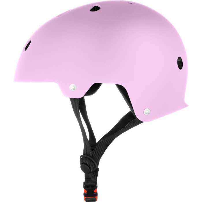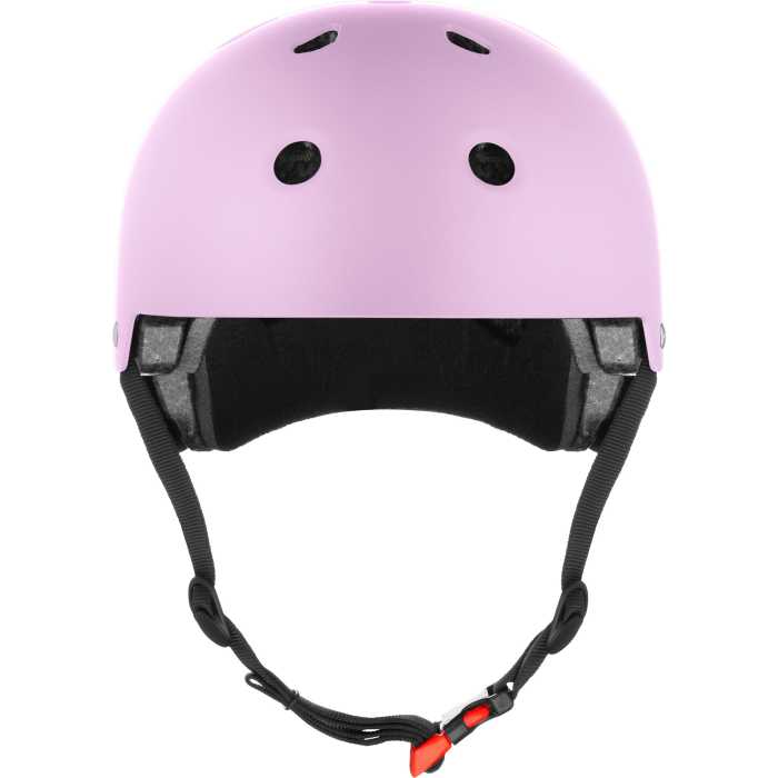 A 3-point durable nylon strap with size adjustable chin straps has a red safety buckle and coupes with the classic low profile skate helmet design for a secure fit.