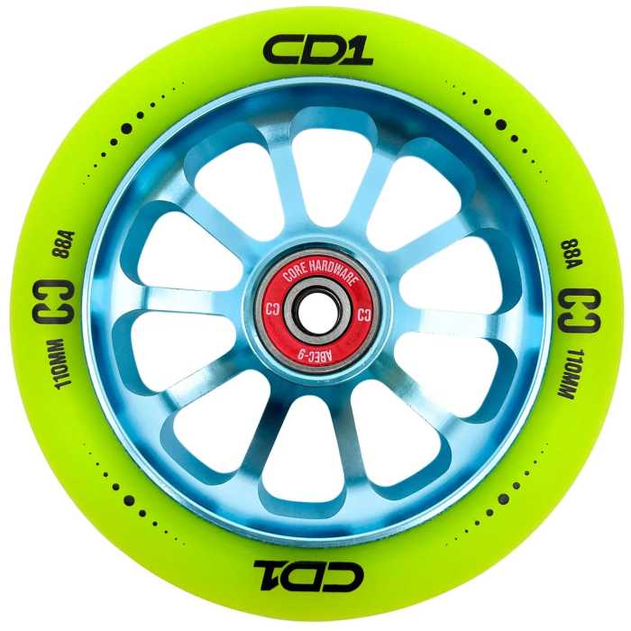 Engineered with precision, the CORE CD1 Spoked Stunt Scooter Wheels provides an unparalleled level of performance. With a 110mm diameter, these wheels offer maximum speed, stability, and control.