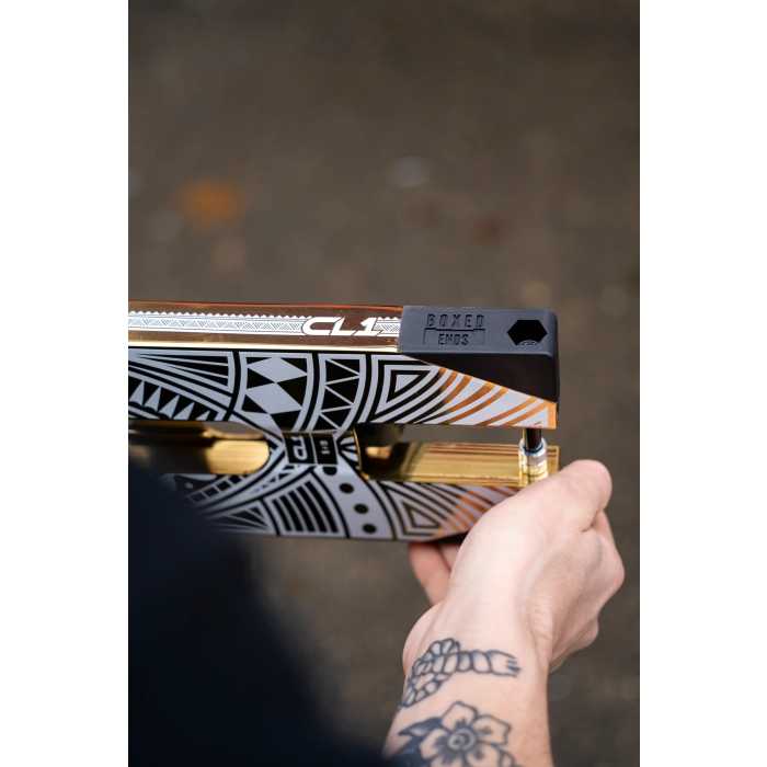 The Nylon brake is still as reliable as ever. Previously featured on the SL1 but this time comes with a 6mm bolt. The CL1 Stunt Scooter Deck has definitely had its upgrades. Extra strength accompanied with ease. Say goodbye to rounded brake bolts!