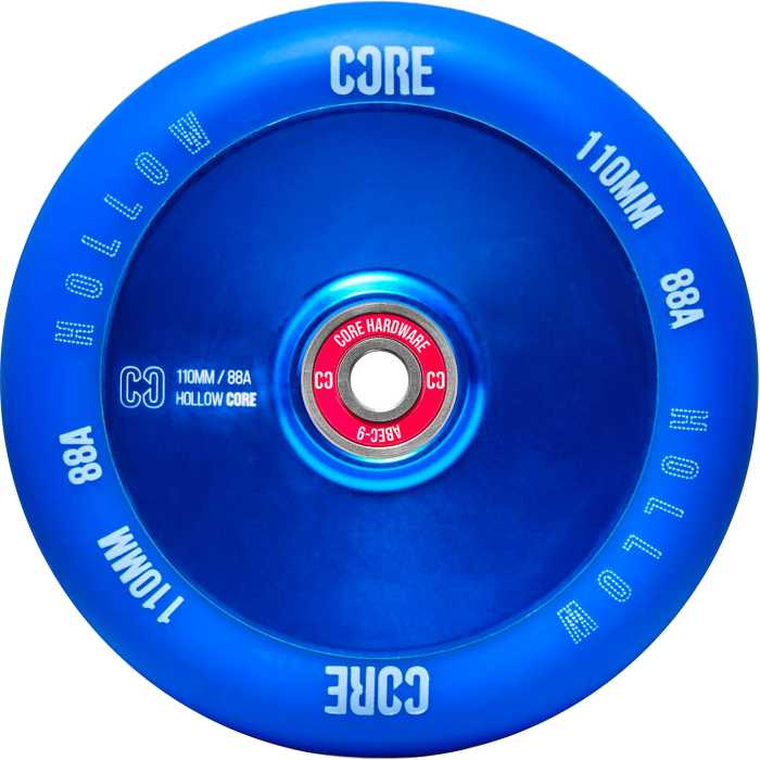 Now you know you're getting a good hollow core wheel when buying CORE! Hollow Core Stunt Scooter Wheels are hugely popular with riders looking to reduce the weight of their scooter.  These wheels (as the name suggests) have a hollow centre instead of a traditional solid centre without compromising on strength. The CORE Wheels come in a super grippy 88a compound which is perfect for both street and park riding.