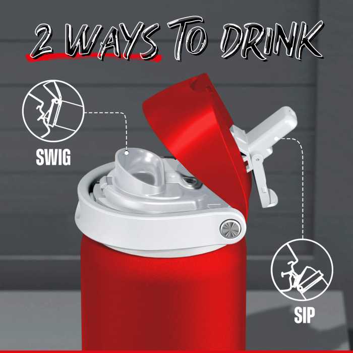 • Dual Spout Lid – Switch between the built-in straw for easy sipping or the wide-mouth spout for fast hydration and adding ice.