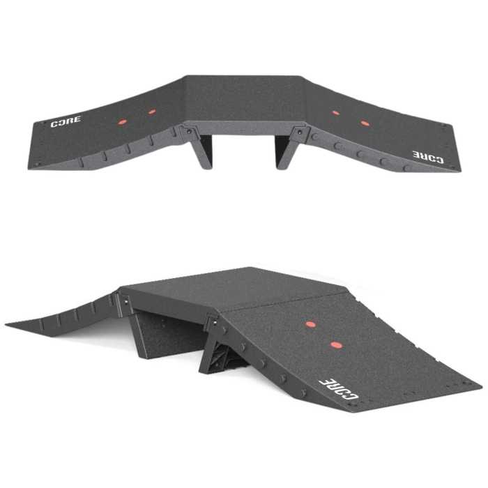 Build your own skatepark! The CORE Mini Funbox Set includes 2 x Kicker Ramps and a Flat Deck (Mini Funbox Connector) which gives you a mini funbox ready for your tricks and jumps!