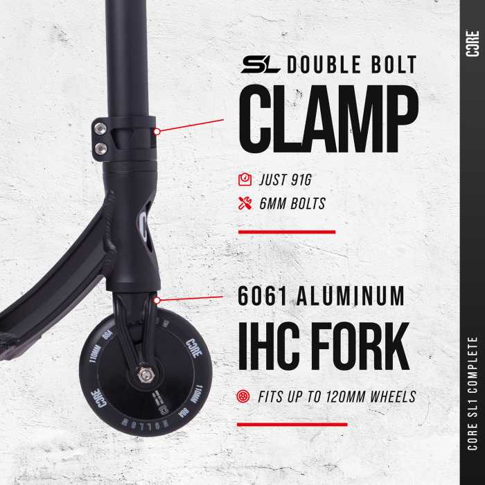 We didn’t rush this process, it's been 2 years in the making to perfect our design and manufacturing, we couldn’t be happier with the final result. The CORE SL1 complete scooter is designed with skatepark riders in mind. Engineered from the ground up to be one of the lightest stunt scooters on the market you’re about to unlock all those tricks you’ve been trying at your local skatepark!
