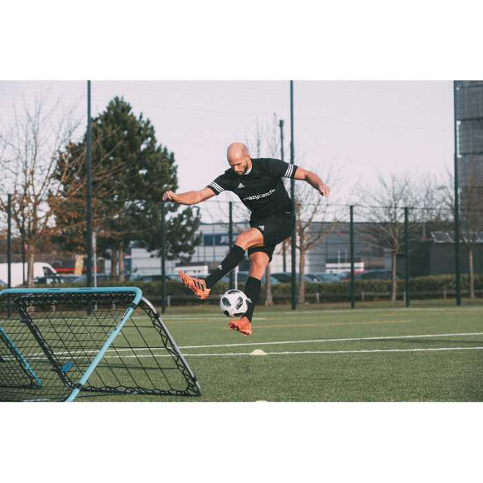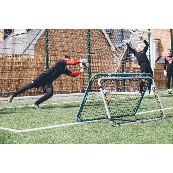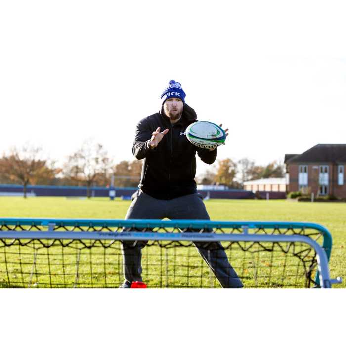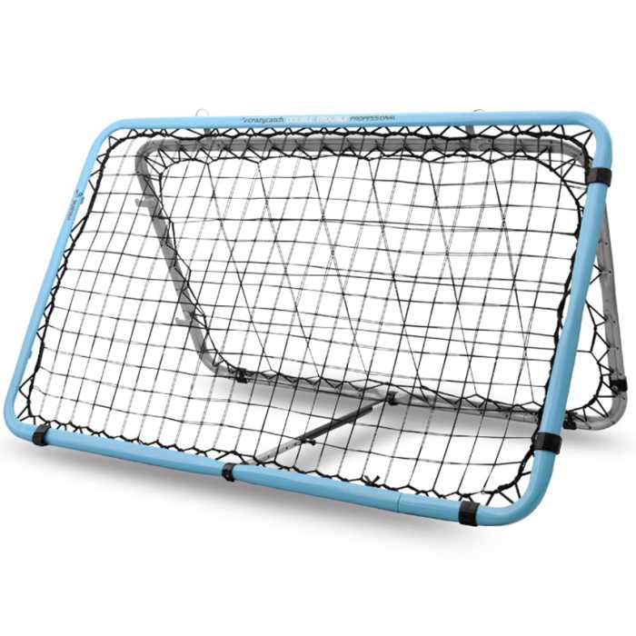 The back (grey side) has large netting for a totally unpredictable / INSANE rebound with big ball sports like football, netball and rugby. (Large net Not compatible with small balls.)