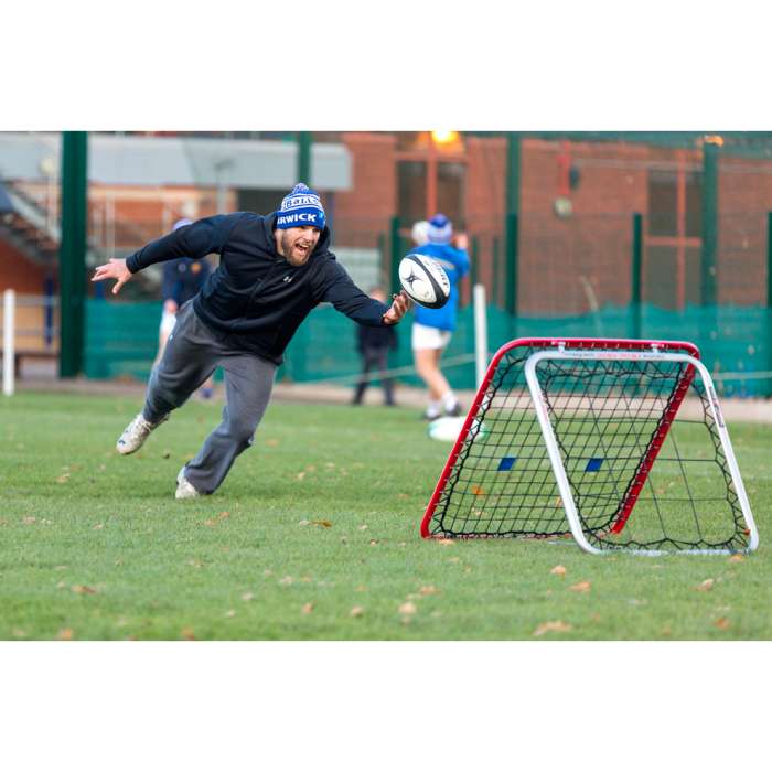 The back (grey side) has large netting for a totally unpredictable / INSANE rebound with big ball sports like football, netball and rugby