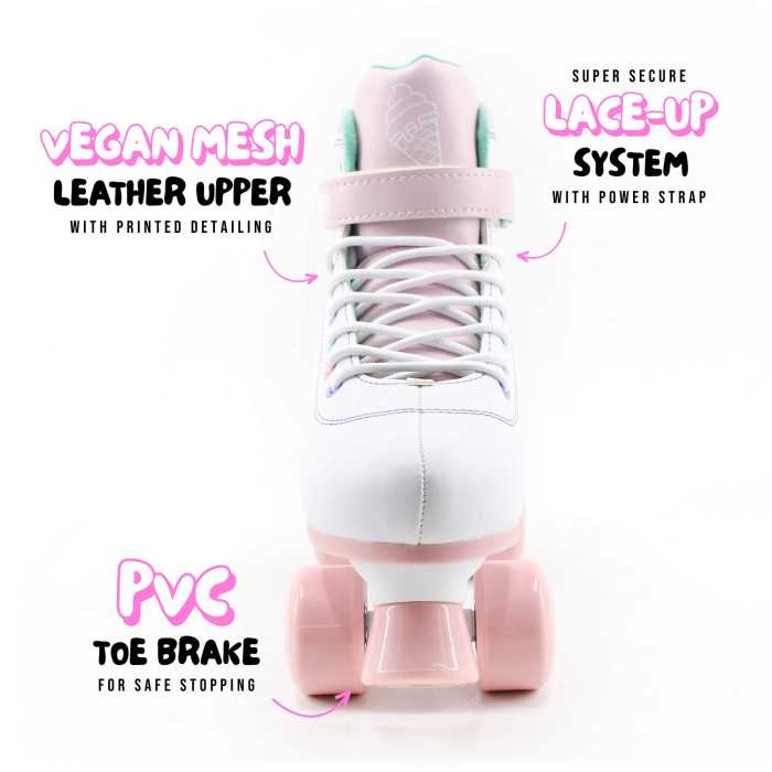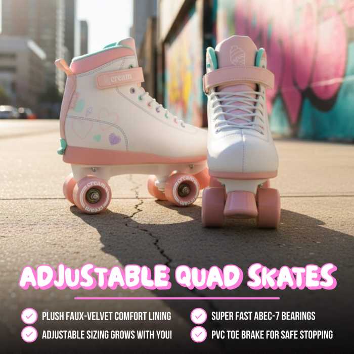 Introducing the CREAM Scoop Adjustable Quad Roller Skates, where fashion meets functionality. These skates are perfect for beginners or casual riders who want a mix of fashion, function and fun.