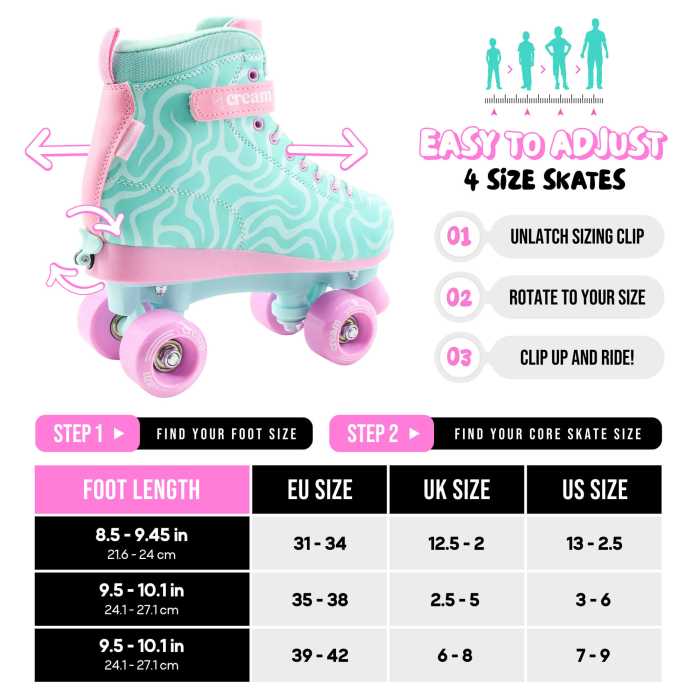 Time to step up your skate game with the Scoop, the adjustable quad from CREAM Skates offer comfort, performance and street style all at once. Whether you’re rolling around town, at the rink, or just styling down the pavement, these are made to turn heads and deliver.
