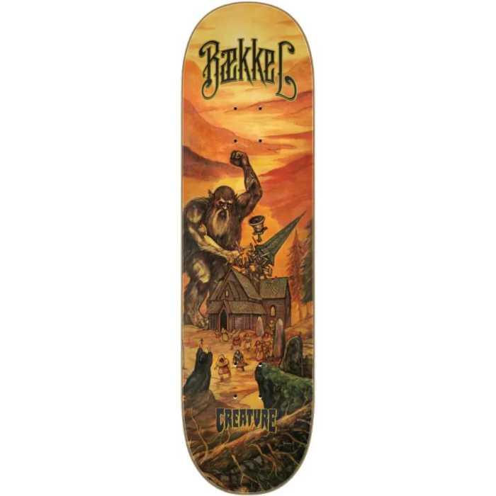 Get ready to smash the skatepark with this new Kevin Bækkel deck from Creature skateboards. This behemoth board is strong enough to get you giddy with excitment. Constructed from the finest 7 ply North American Maple they're pressed individually using epoxy making a strong, responsive deck. This provides a long lasting pop and consistent concave and kick.