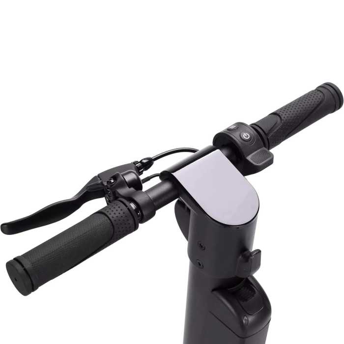 In sport mode, the 350w front-mounted hub motor powers the scooter up to its top speed of 18.6mph in seconds. Load-dependant, it can cope with hills up to 20%. Three user selectable drive modes with speed limits of 6mph, 9mph and 18.6mph respectively, can be combined with the scooters cruise control function, to aide you in maximising the range from each battery.