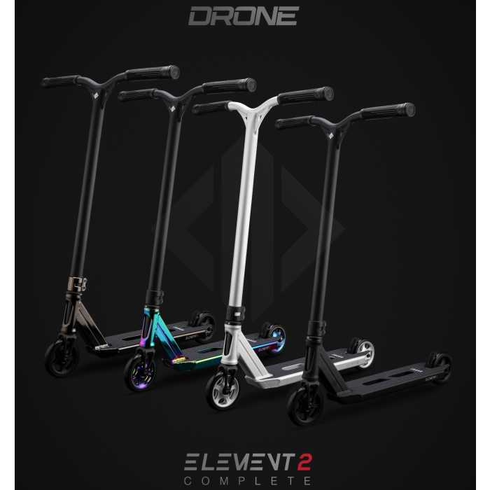 The Element 2 Feather-Light Complete advances the Drone Element Series into a new era of performance products. The Element 2 Feather-Light scooter comes with a range of high-end improvements compared to the original Element that makes it unbeatable in terms of weight and performance. With this complete they wanted to refine everything by reducing weight in every component.