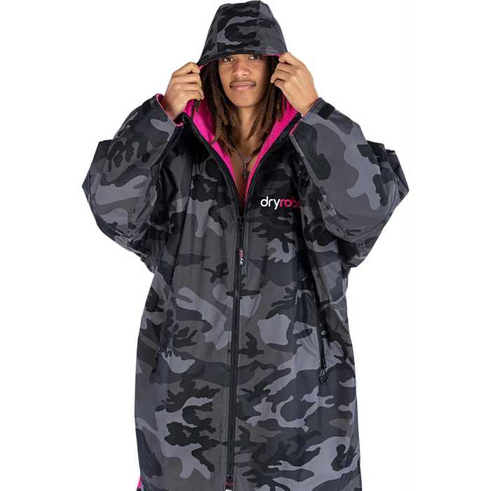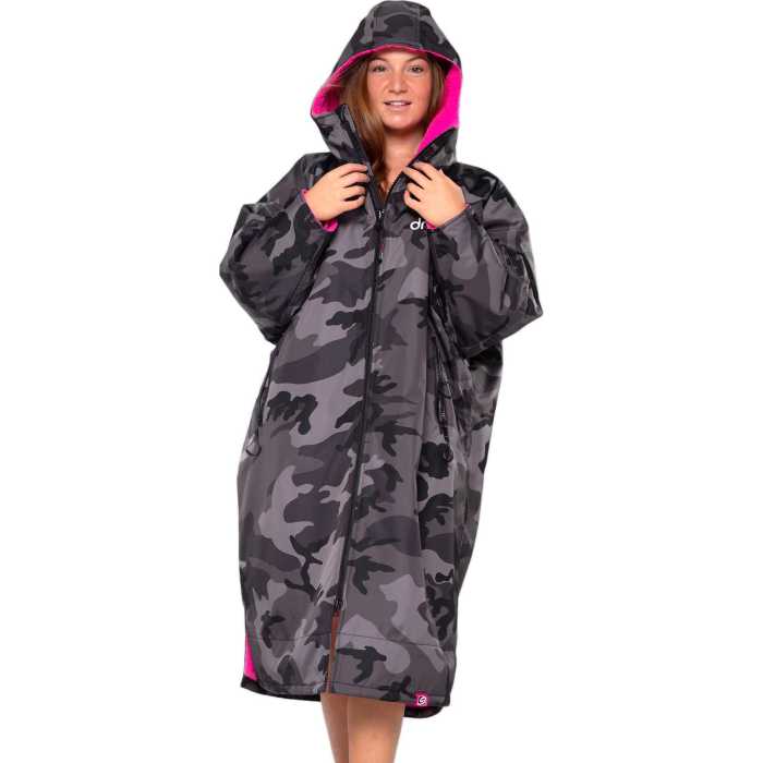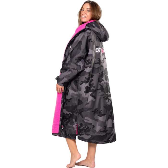 Dryrobe Advance Long Sleeve V3 Changing Robe - Black Camo/Pink