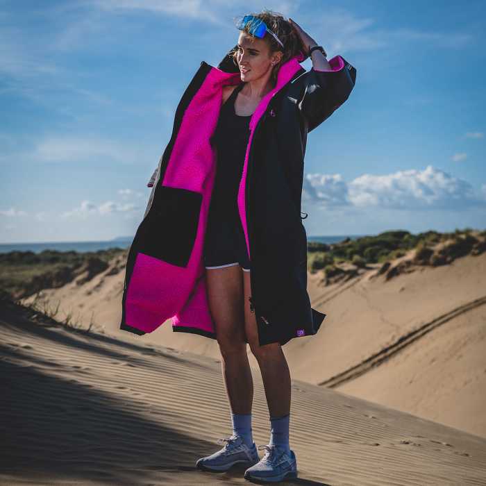 Dryrobe Advance Short Sleeve V3 Changing Robe - Black/Pink