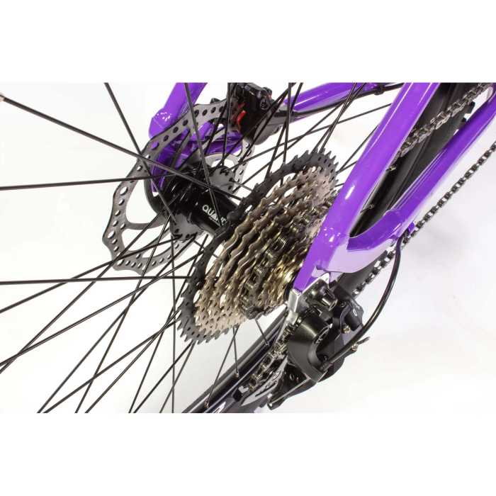 The double-wall rims coupled with Kenda Honey Badger 27.5" tyres and Sealed Bearing Quick-Release Hubs help keep you rolling smoothly.