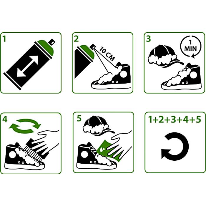 It's easy and effective to use: Just apply the foam to your sneakers or caps and leave it for a few minutes. Clean them with a brush or sponge and then wipe with a damp cloth.