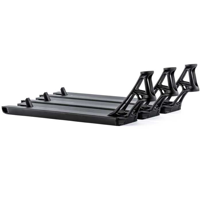 Now constructed from 6082 aluminium rated slighty stronger than the more usual 6061 grade. Compatible with 120mm x 26mm diameter wheels, it comes with a brand new fender for added lightness, also using new torx male axles both stronger and more practical, only needing one spanner to tighten the deck (included)