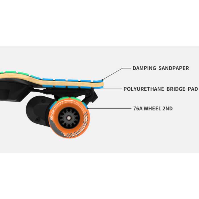 Parabolic wheel cutouts mean larger wheel compatibility. No more compromising stability for comfort. Optimized flex patterns allow wider sections of the deck to have lower flex for more stability while the narrower waist has more flexibility for a smoother ride. Alternating layers of multi-directional fiberglass,, and bamboo combine to create a super-tough and elastic deck. The surface of the deck adopts the latest UV fiberglass printing processes for a more vivid and durable pattern. The head and tail of the board are slightly angled to improve handling and make it easier to pick up. True skaters will appreciate these design innovations!