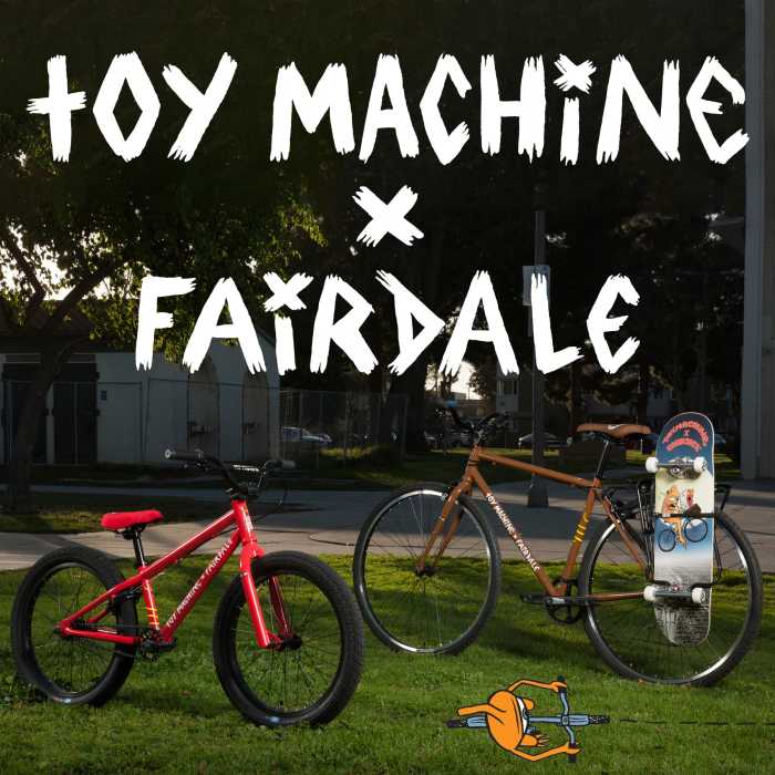 Fairdale worked with Toy Machine to create this special limited-edition bike. A brainwashing Brown Lookfar (with the Skaterack assembly included) featuring custom Toy Machine art by Ed Templeton throughout, and you know they had to do a special skate deck with them (sold separately)."
